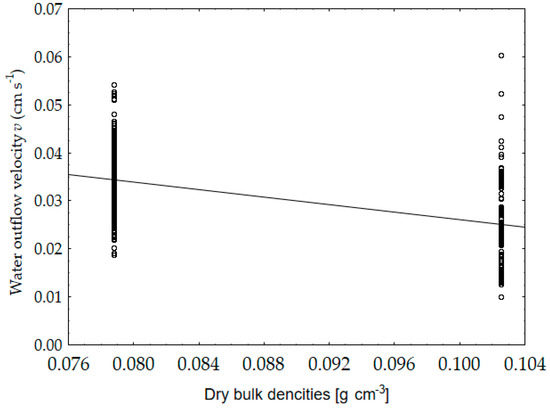 Results of correlation analysis of water outflow velocity and substrate bulk density.