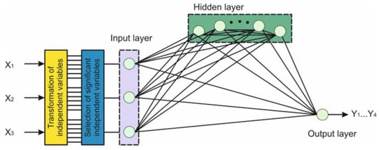 The NeuralWorks Predict Software has the ability to analyze and transform the data into forms suitable for neural networks. Moreover, the software uses a genetic algorithm to reveal the input variables that are good predictors of the output []. All models were designed to have a hyperbolic-tangent transfer function in the hidden layer and a sigmoid (logistic) transfer function in the output layer. The software involves the cascade-correlation learning algorithm. This constructive method starts with a minimal network, then automatically trains and adds new hidden units one by one. Consequently, the network determines its own size and topology []. The learning rate was equal to 0.01—the default value in the NeuralWorks Predict Software.