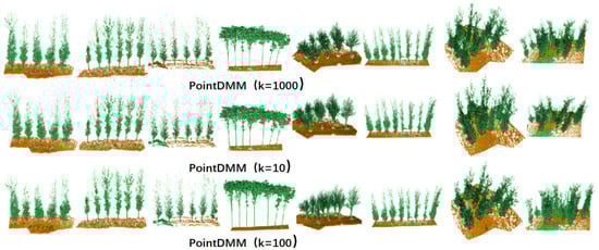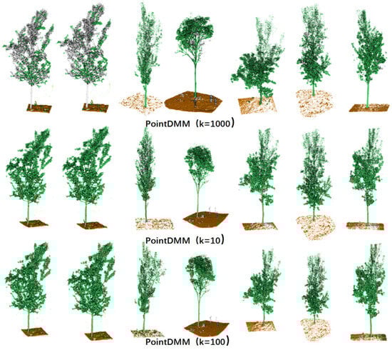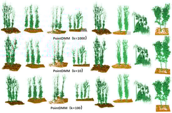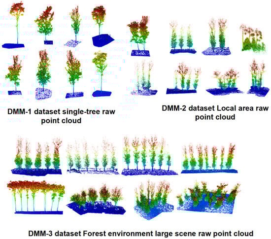 Figure 5. DMM-3 represents the point cloud of multiple trees in a large range, displayed by the cutting method, and the original point cloud is shown in