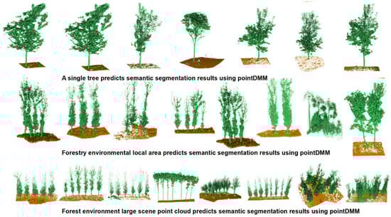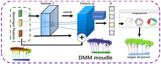 Recognizing that forestry point cloud data are often highly obscured and present other issues, we engineered a feature extraction DMM module. This module is specifically designed to optimize the extraction of features from forestry point clouds. Additionally, we developed a semantic geometric segmentation algorithm that categorizes point clouds based on shared features. As a result, we propose an end-to-end point cloud processing framework called pointDMM.