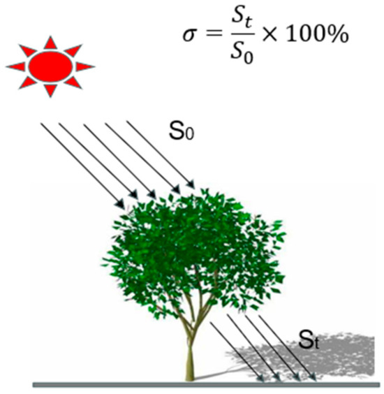 - Zheng, S.; Guldmann, J.-M.; Liu, Z.; Zhao, L.; Wang, J.; Pan, X. Modeling of shade creation and radiation modification by four tree species in hot and humid areas: Case study of Guangzhou, China. Urban For. Urban Green. 2020, 47, 126545. [Google Scholar] [CrossRef]