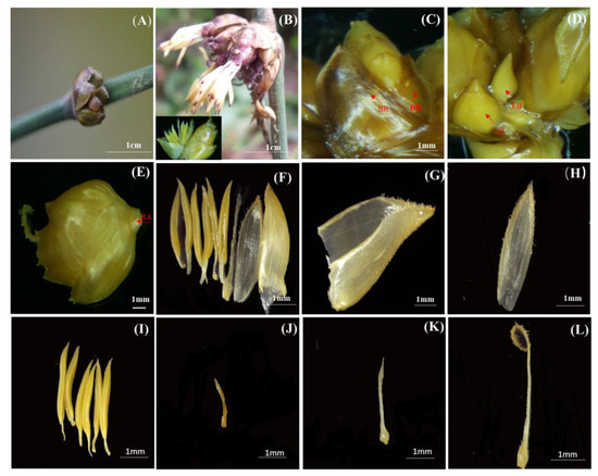 Yang, D.; Li, J.; Wang, S.; Yu, L.; Zhan, H.; Ma, Y. Abnormalities in Stamen and Ovary Development Responsible for Low Seed Set of Dendrocalamus hamiltonii Nees et Arn. ex Munro. Forests 2023, 14, 2282. https://doi.org/10.3390/f14122282