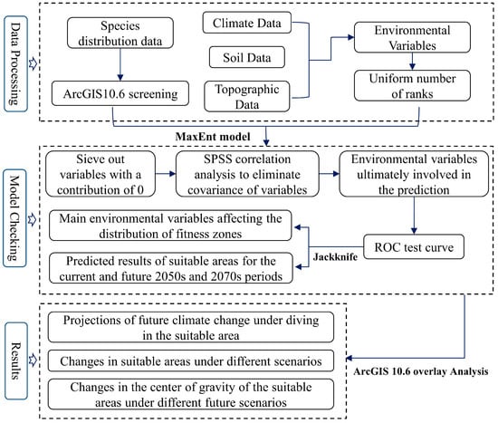 In this paper, the MaxEnt3.4.4 (Maximum Entropy Model, https://biodiversityinformatics.amnh.org/open_source/maxent/, accessed on 17 December 2022) is selected for simulation analysis. The MaxEnt model is a mathematical method for inferring unknown probability distribution based on limited known information. It has been widely used as a quantitative analysis tool for predicting the future distribution of species.