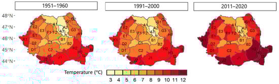 Changes in the mean annual temperature in Romania across different regions. Adapted from Mihai et al. [].