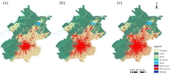 Land-use distribution in Beijing from 2000 to 2020 (a) 2000, (b) 2010, (c) 2020.