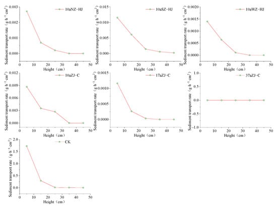 The variation of sediment transport rate along height in different types and control plots.