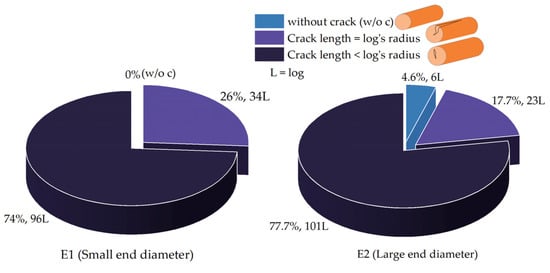 Number of logs with radial cracks at both ends. (a): Length of crack smaller than the log’s radius; (b) length of crack equal to the log’s radius. E1: small-end diameter; E2: large-end diameter.