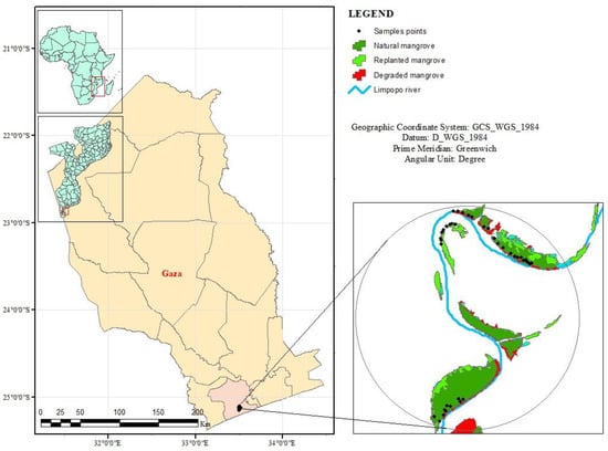 - Shapiro, A. Mozambique Mangrove Mapping via Satellite from 1994–Present. Volume 16. 2018. Available online: https://www.researchgate.net/publication/329250601 (accessed on 10 October 2023).