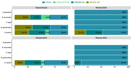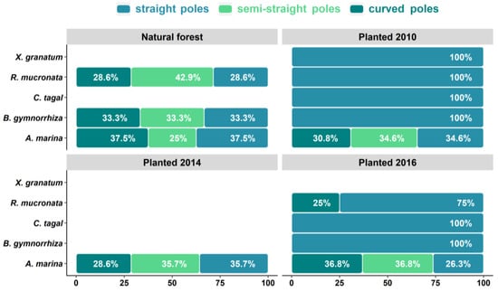 - Bosire, J.O.; Dahdouh-Guebas, F.; Kairo, J.G.; Wartel, S.; Kazungu, J.; Koedam, N. Success rates of recruited tree species and their contribution to the structural development of reforested mangrove stands. Mar. Ecol. Prog. Ser. 2006, 325, 85–91. [Google Scholar] [CrossRef]