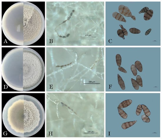 - Li, J.-F.; Jiang, H.-B.; Jeewon, R.; Hongsanan, S.; Bhat, D.J.; Tang, S.-M.; Lumyong, S.; Mortimer, P.E.; Xu, J.-C.; Camporesi, E.; et al. Alternaria: Update on species limits, evolution, multi-locus phylogeny, and classification. Stud. Fungi 2023, 8, 1–61. [Google Scholar] [CrossRef]