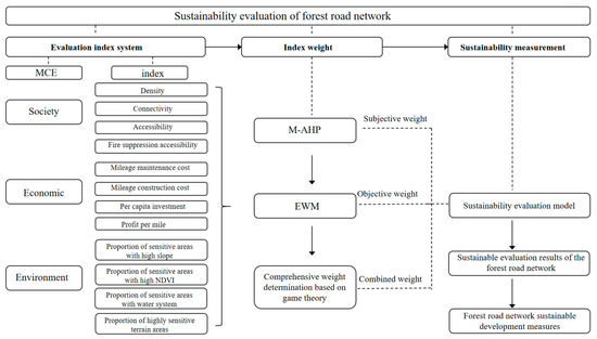 Table 1 shows the evaluation system for the sustainable development of forest road networks.