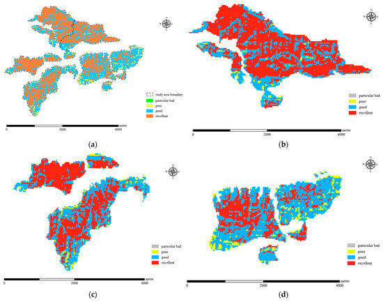 After calculating the NDVI value in the study area, we reclassified the NDVI based on the classification interval data, converted the data into vector data, used the intersection tool to superimpose the road network in the study area and the NDVI reclassification area, and finally calculated the ratio of road length to total length in highly sensitive areas. The reclassification tool in ARCGIS 10.7 was used to classify the NDVI into five levels. The reclassification numbers were assigned as shown in
