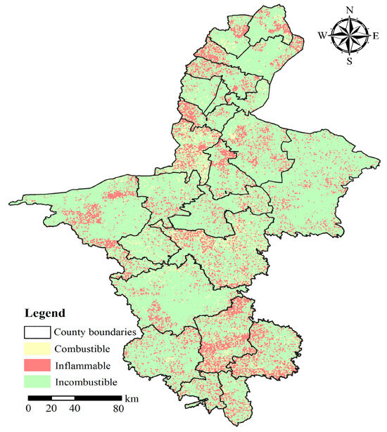 Especially in northwest China, scarce forest resources play a huge ecological significance in the regional ecological environment, such as wind and sand control, water conservation, and ecological environment improvement [5]. In regions where urban development meets or intermingles with natural vegetation, known as the Wildland–Urban Interface (WUI) or Wildland–Urban Intermix depending on population density near forests, wildfire prevention and mitigation are critical. The close proximity of forests to urban areas heightens wildfire risks, necessitating strong prediction and control strategies. Wildfires not only threaten forest resources but also significantly affect people’s lives and property. Accurate forecasting and proactive preventive measures are thus crucial in the WUI. The goal is to decrease both the occurrence and severity of wildfires in these areas by evaluating specific fire hazard severity zones. This evaluation considers factors such as proximity to vegetation, access difficulties, and local weather conditions that can elevate fire risks. Effective management in these WUI areas is essential to protect both the natural and built environments [6,7].