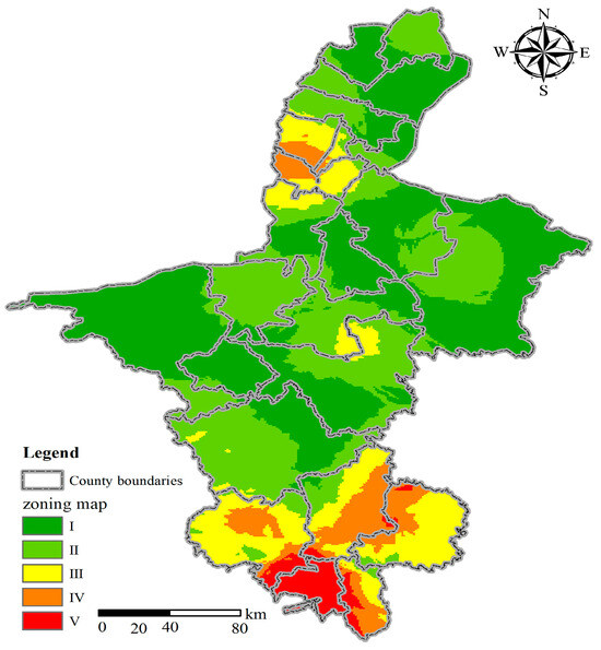 Probability and zoning map of forest fire risk in Ningxia Hui Autonomous Region (for probability and division classification, reference Table 4).
