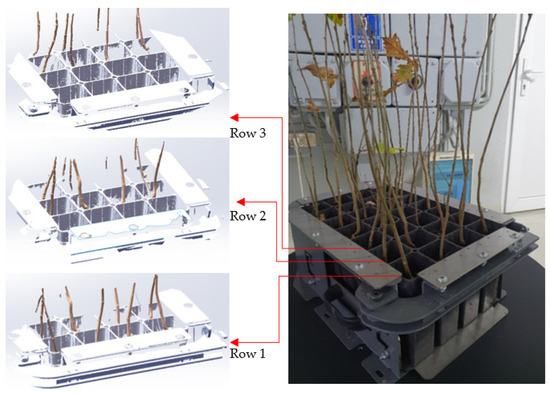 The concept of the vehicle’s construction, its technical parameters and its general method of operation have already been discussed in many studies [12,21]. This article is focused only on one of the vehicle’s components: the seedling storage and feeding unit.