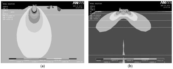 Numerical modeling of stress distribution in pavement structures under real conditions: (a) vertical; (b) horizontal.