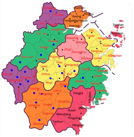 Zhejiang Province has a land area of 105,500 square kilometers with a linear distance of approximately 450 km from east to west and north to south and accounts for 1.06% of China’s total land area. It is one of the smallest provinces in terms of area. The topography of Zhejiang is characterized by mountains and hills (70.4%), plains and basins (23.2%), and rivers and lakes (6.4%). The arable land covers only 2.08 million hectares, which results in high habitat complexity. The terrain of Zhejiang slopes in a stepped manner from southwest to northeast. The southwestern part is dominated by mountains, the central part by hills, and the northeastern part is characterized by a low-lying alluvial plain. It can be roughly divided into six topographical regions: North Zhejiang Plain, West Zhejiang Hills, East Zhejiang Hills, Central Jinqu Basin, South Zhejiang Mountains, and Southeast Coastal Plain with Islands. Zhejiang has a subtropical monsoon climate characterized by distinct seasons, moderate annual temperatures, abundant sunlight, plentiful rainfall, high humidity, and synchronous changes in the rainy and hot seasons. The annual average temperature ranges from 15 to 18 °C, with extreme maximum temperatures reaching 44.1 °C and extreme minimum temperatures dropping to −17.4 °C. The annual average rainfall in Zhejiang ranges from 980 to 2000 mm, with an annual average sunshine duration of 1710 to 2100 h. Due to the influence of the ocean, Zhejiang enjoys superior temperature and humidity conditions compared to the inland monsoon regions at the same latitude, making it one of the few regions with relatively favorable natural conditions in China.
