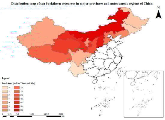 Distribution map of Sea Buckthorn (Hippophae rhamnoides L.) in various provinces (autonomous regions) of China.