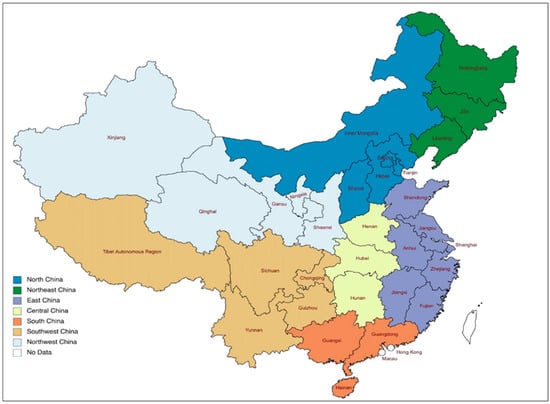 Furthermore, quantified in Watts per square meter, shortwave radiation offers significant insights into the solar energy input pertinent to the forestry field. This input provides insight into the accessibility of sunlight, a critical factor influencing photosynthesis and the overall dynamics of forest ecosystems. The data for climate factors are collected from the China Environmental Statistical Yearbook. Table 2 represents the regional distribution of Chinese provinces.