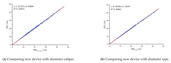 - Zheng, S.; Xiong, W.; Fang, L.; Sun, L.; Yuan, F.; Zheng, X. Research on Near-Truth Measurement and Calculation Model of Standing Tree DBH. J. Northwest For. Univ. 2021, 36(05), 125–132. [Google Scholar]