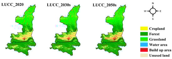 Spatial Distribution of Land Use in Shaanxi Province in 2020, 2030 and 2050.
