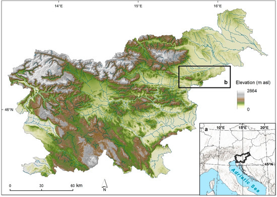 (a) The location of Slovenia. (b) The Boč–Haloze–Donačka gora (Natura 2000 site) study area in eastern (Sub-Pannonian region) Slovenia.