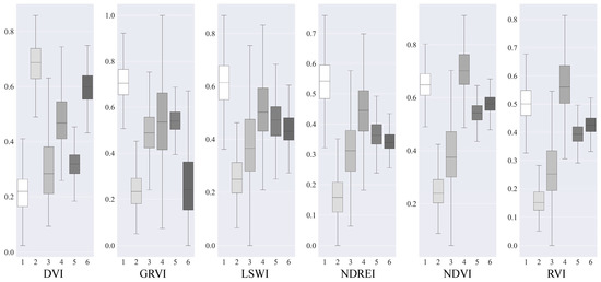 | Land Surface Water Index (LSWI) | (NIR SWIR-1)/(NIR + SWIR-1) | ||