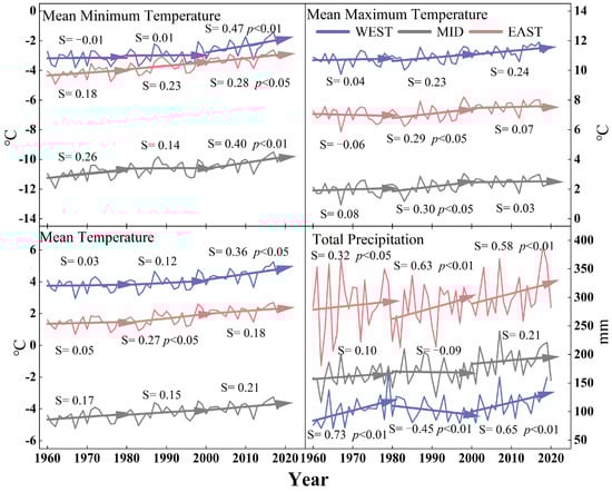 2.5.2. Theil–Sen Median and Mann–Kendall Test