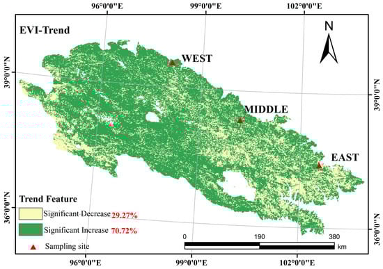 4.1. Spatial and Temporal Patterns of Interannual Variation of TRW and EVI