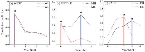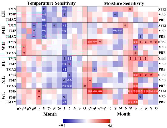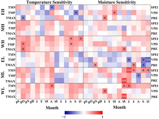 4.3. Spatial and Temporal Differences in the Sensitivity of TRW and EVI to Climate Change