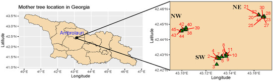 - Xu, J.; Hansen, O.K.; Thomsen, I.M.; Nielsen, U.B. Genetic variation and genotype by environment interaction in the susceptibility of Abies nordmanniana (Steven) Spach to the fungus Neonectria neomacrospora (Booth & Samuels) Mantiri & Samuels. Ann. For. Sci. 2018, 75, 17. [Google Scholar] [CrossRef]