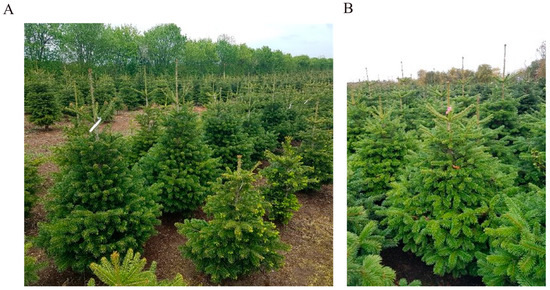 - Nielsen, U.B.; Chastagner, G.A. Variation in Postharvest Quality among Nordmann Fir Provenances. HortScience 2005, 40, 553–557. [Google Scholar] [CrossRef]