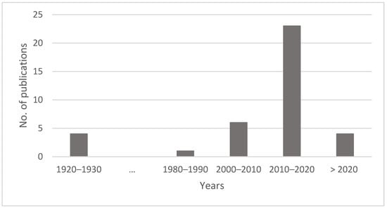 We can easily observe in Figure 1 that the literature is recent. Indeed, although the seminal papers were published during the decade 1920–1930, most of the literature on the topic appears after 2000 and even after 2010. The reason is probably that in the context of climate change, insurance tools are promoted and recommended by public institutions, encouraging research on this topic.