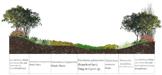 Distribution of ecological succession of different vegetation in Jiulongchi Wetland, Fanjing Mountain.