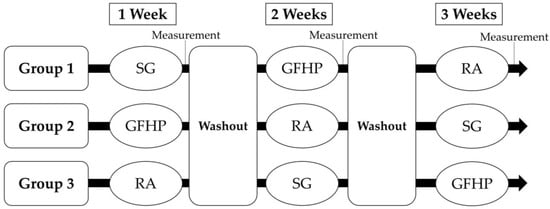 Design of the experiment. SG, self-guided forest healing program; GFHP, guided forest-healing program; RA, routine activities without any intervention.