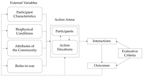 - Ostrom, E. Background on the institutional analysis and development framework. Policy Stud. J. 2011, 39, 7–27. [Google Scholar] [CrossRef]