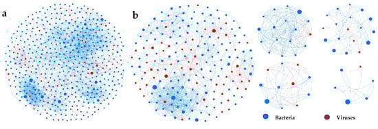 3.4. Co-Occurrence of Viruses and Bacteria Based on Network Analysis