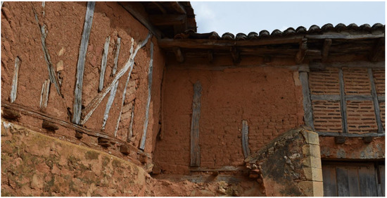 The constructive solutions and materials used to fill or enclose the spaces outlined by the framework also depend on locally available resources. This framework can be filled using heavy materials covering different monolithic solutions, such as piled earth, tapialete, earth and lime concrete, and masonry formwork, as well as solutions based on the stacking of adobe constructions, brick or ashlar [2]. On other occasions, these spaces are closed using flexible wooden elements such as wattles, reeds, or wicker and rigid wooden elements such as laths or bars, combined in most cases with earth, plant fibres, and other elements in order to increase the resistance, durability, and insulation of the enclosure. In these cases, the rigidity or flexibility of the species available in the region is a determining factor for the development of a given solution.