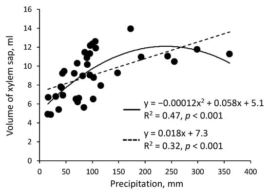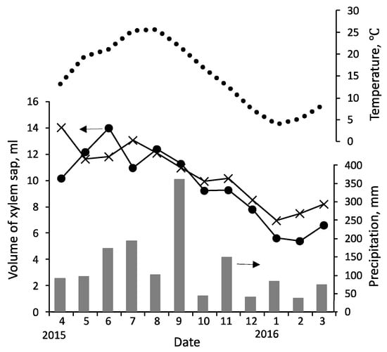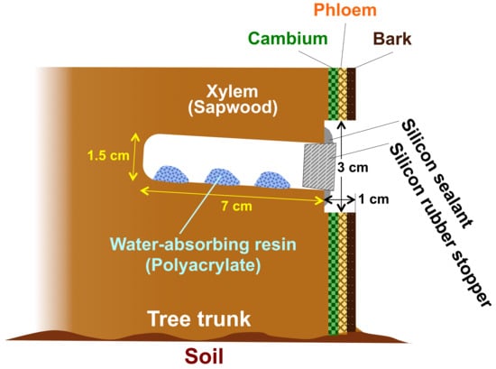 Takamatsu, T.; Watanabe, M.; Koshikawa, M.K. Convenient Sampling of Xylem Sap from Adult Tree Trunks and Analysis of Its Components. Forests 2023, 14, 389. https://doi.org/10.3390/f14020389