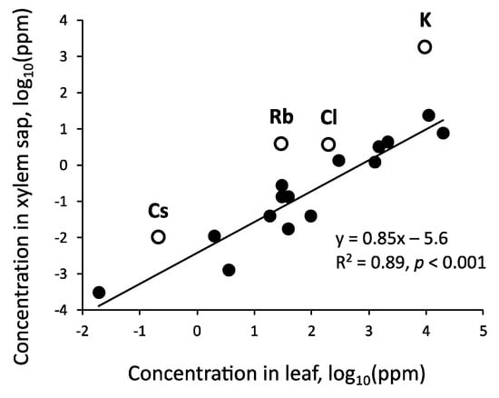 - Smith, K.T.; Shortle, W.C. Conservation of element concentration in xylem sap of red spruce. Trees 2001, 15, 148–153. [Google Scholar] [CrossRef]