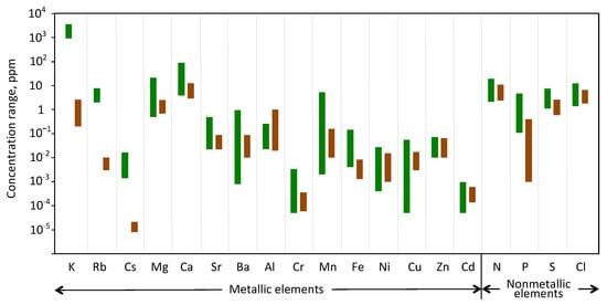 - Takada, J.; Takamatsu, T.; Satake, K.; Sase, H. Data on Elemental Concentration in Land Plants by Neutron Activation Analysis (No. 1); National Institute for Environmental Studies: Tsukuba-City, Japan, 1993; 260p. (In Japanese) [Google Scholar]