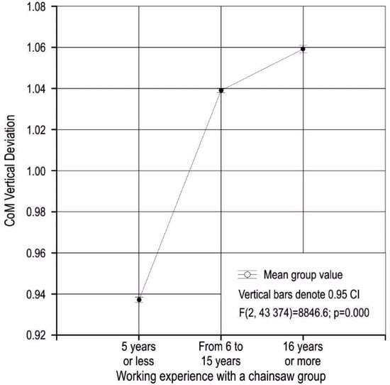 The CoM vertical deviation (m) versus Working experience with a chainsaw.