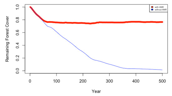 Comparison between the effect of implementing and not implementing ANR in sustaining the forest cover.