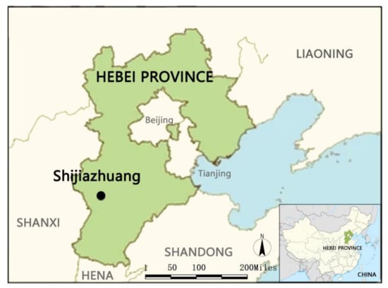 The location of Shijiazhuang, Hebei Province, China.