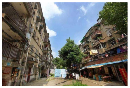 Many new residential areas have been built in China since the economic reforms of the 1980s. This was due to the rapid development that accompanied the opening of China’s economy and the commercialization of housing. Therefore, people began to pay attention to green ecology and human settlements [11]. In contrast, the old residential neighborhoods that were the main urban residential areas under the original economy system plan have gradually declined [12]. Different parts of the same city have different levels of development and varying resident lifestyles, leading to a sharp contrast between new and old residential neighborhoods. These old residential neighborhoods hinder the harmonious and healthy development of the city [10]. According to preliminary statistics from the Ministry of Housing and Urban–Rural Development, there are nearly 170,000 old residential neighborhoods in China, with more than 42 million households, covering an area of about 4 billion square meters [13,14]. The old residential neighborhoods were primarily built in the 1980s and 1990s, with a small number built in the 1970s, by government agencies or as investments for companies [10]. These old residential neighborhoods comprise 4–6 story apartment buildings [15]. The apartment buildings in these residential areas are in disrepair and often cannot meet residents’ living requirements. They lack green spaces, have outdated infrastructure, face serious security issues, and the environment is unclean and chaotic [10,16,17,18,19]. These old residential neighborhoods are mostly located in urban centers and are home to more socially disadvantaged groups, such as low-income groups [20], migrant workers [21], and the elderly [10].