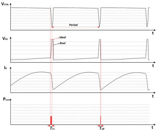 As can be seen from Equation (17), when Vte is a constant value, the smaller the D, the greater the voltage gain M. The DC–DC converter will inevitably generate switching losses Psw and conduction losses Pcond due to factors such as switching on-resistance, which affects the overall circuit efficiency.