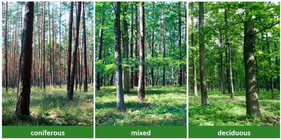 We have found very few studies comparing bat activity in coniferous and deciduous forests of similar age, spatial structure, and clutter conditions (the amount of vegetation in the forest canopy and understory). This is because these types of forests usually differ not only in tree species, but also in many other characteristics, such as habitat fertility, vegetation diversity, layer arrangement, rotation period, and harvesting system. In these situations, it is difficult to distinguish whether bat activity is affected by forest type or by some other factor [47,48].