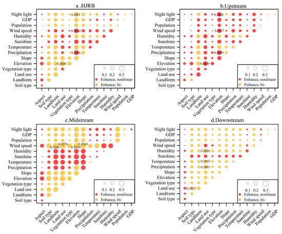 Interaction detector of factors influencing vegetation in the HJRB from 2000 to 2020.