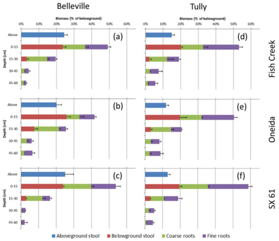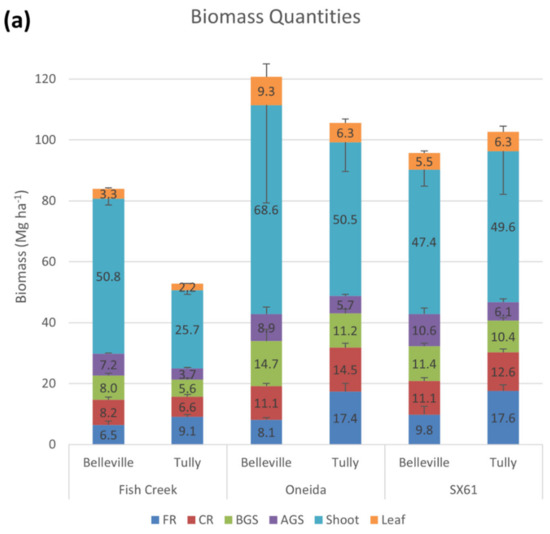 - Fontana, M.; Collin, A.; Courchesne, F.; Labrecque, M.; Bélanger, N. Root System Architecture of Salix Miyabeana “SX67” and Relationships with Aboveground Biomass Yields. Bioenerg. Res. 2020, 13, 183–196. [Google Scholar] [CrossRef]