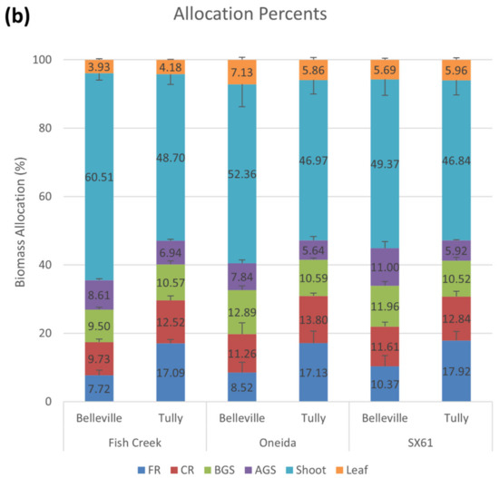 | % AGS of Belowground Biomass | 18.2 (1.6) | 0.0024 | 0.0323 | 0.0177 | 0.0005 | SX: 24.8 a; FC: 22.2 ab; ON: 20.3 bc | FC: 17.4 c; ON: 12.7 d; SX: 12.0 d | |||